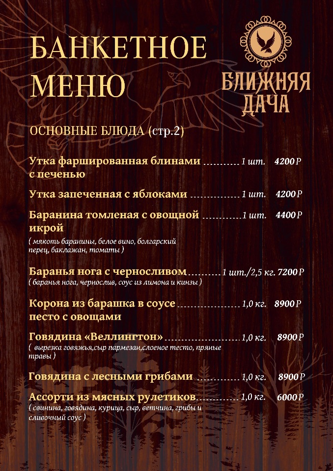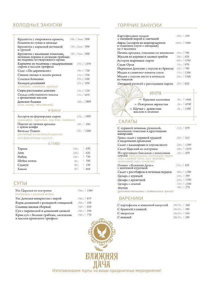 Сладкоежек нам тоже есть чем удивить! Кулинары "Ближней Дачи" порадуют Вас ароматной выпечкой и нежными десертами. Ресторан "Ближняя Дача"- это место, где можно прекрасно отдохнуть в кругу семьи или друзей, а также отметить любое торжественное событие.